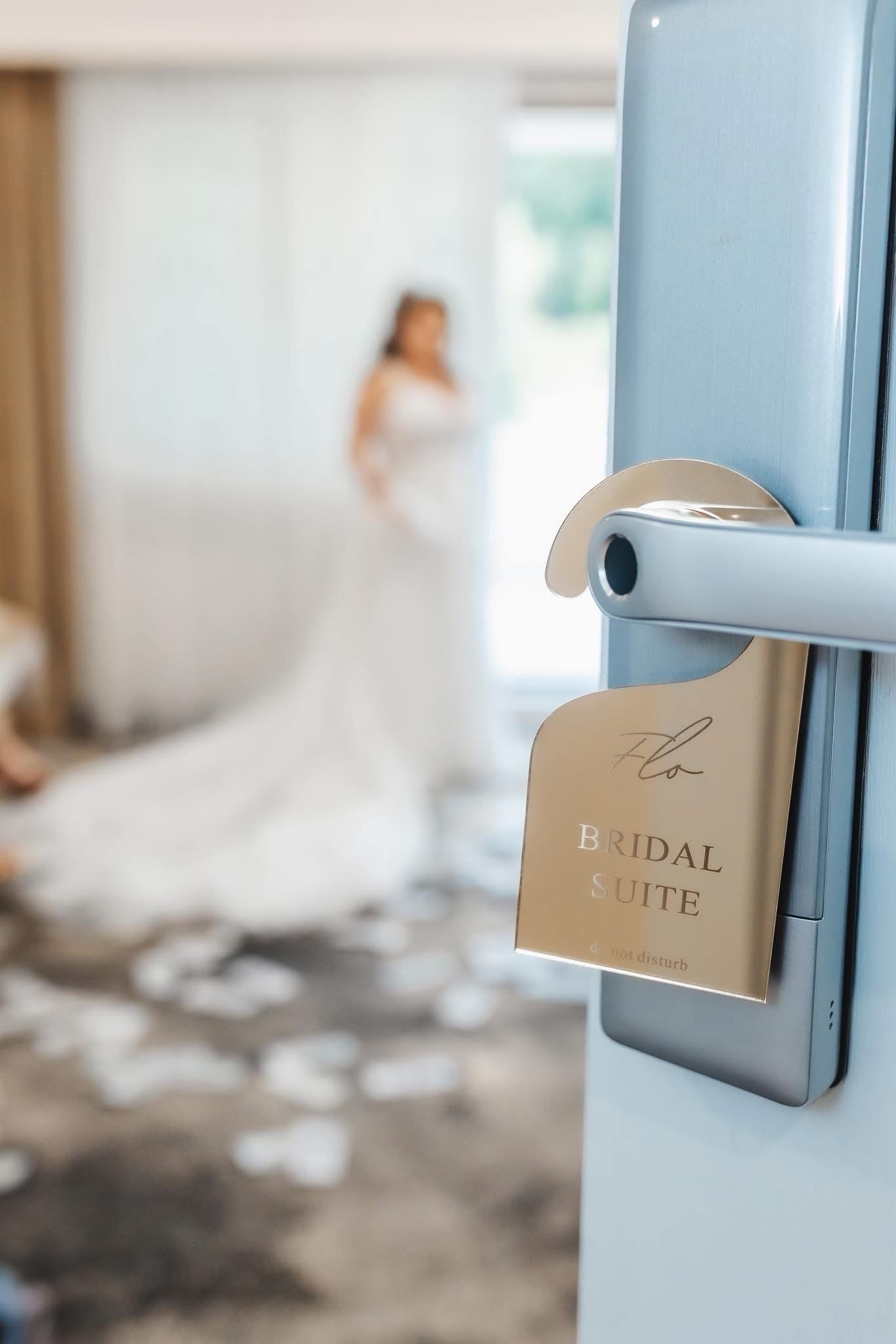 Elevate your bridal suite with this sophisticated do-not-disturb sign, crafted from premium acrylic in your choice of elegant finishes: lustrous gold, romantic rose gold, or sleek silver. Personalised to reflect your wedding day aesthetic, this statement piece combines functionality with luxury, ensuring privacy whilst adding a refined decorative touch to your bridal preparations. Perfect for destination weddings, hotel suites, or home celebrations, it's a thoughtful detail that transforms a practical necessity into an elegant accessory. A memorable keepsake that captures the exclusivity and glamour of your special day.
